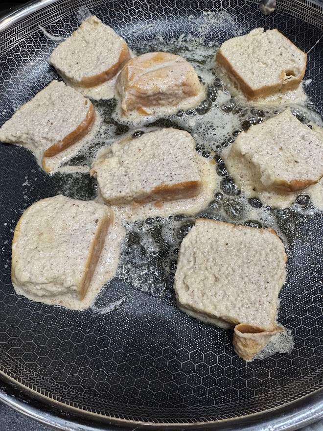 Cutting the roles into smaller slices made every bite perfectly crispy, I’ve never made mini French toast pieces but this may be a regular. It also made the actually dipping, and cooking part much faster.