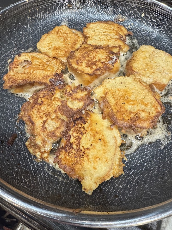 DIP your Hawaiian slices in the egg, DON’T soak the Hawaiian slices in the egg batter. You will get mushy, but fragrant yuck. I literally put one side down in the egg, flipped it immediately then put it a hot buttered pan.