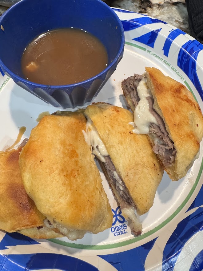 Everyone else loved them, especially with the Au Jus to dip them in. I think I’ll be trying this again, but with a different recipe and maybe slider buns or savory Hawaiian rolls instead.